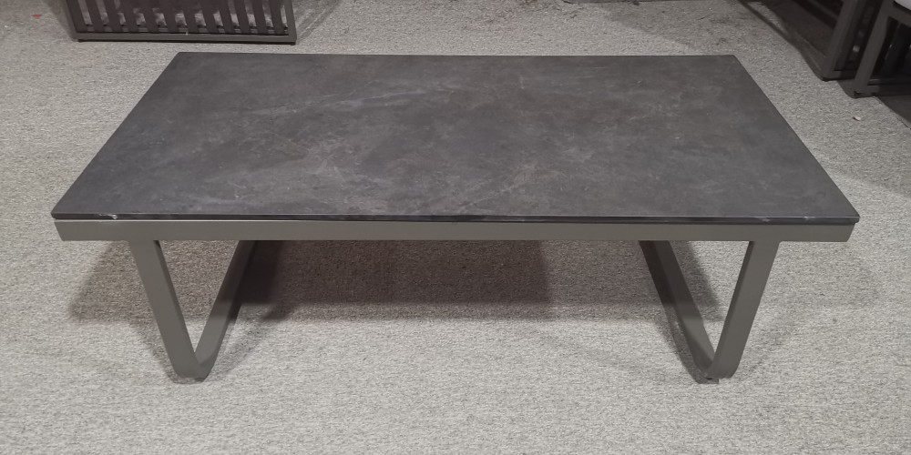 Komplektą vainikuoja stilingas staliukas su tvirtu ir prabangiu akmens paviršiumi – atsparus įbrėžimams, karščiui bei aplinkos poveikiui.